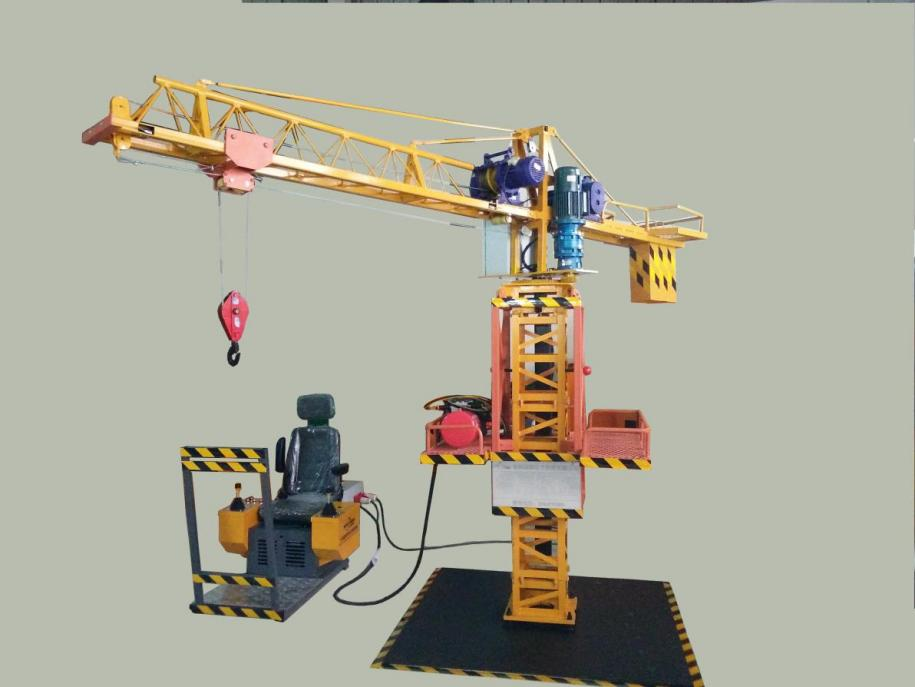 11、塔機(jī)操作部分和模擬機(jī)硬件連接,包含真皮座椅,真機(jī)操作手柄,及開關(guān)按鈕。和真機(jī)一樣,配有220V電鈴,回轉(zhuǎn)制動開關(guān),啟動,停止按鈕。操作步驟:先打開電鎖,按總起按鈕,再按警鈴按鈕,電鈴響起,這樣機(jī)器就能正常操作了?;剞D(zhuǎn)制動關(guān)閉,塔機(jī)停止轉(zhuǎn)動,打開制動按鈕,機(jī)器正常旋轉(zhuǎn)。