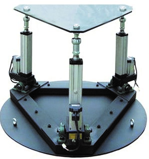 LG-JT型動(dòng)感交通安全體驗(yàn)駕駛模擬器設(shè)備由模擬駕駛艙、視景模擬駕駛軟件、數(shù)據(jù)采集系統(tǒng)、三自由度平臺(tái)系統(tǒng)由Stewart機(jī)構(gòu)的三自由度運(yùn)動(dòng)平臺(tái)、計(jì)算機(jī)控制系統(tǒng)、驅(qū)動(dòng)系統(tǒng)等組成(如下圖)。下平臺(tái)安裝在地面的固定基座基上,上平臺(tái)為支撐平臺(tái)。計(jì)算機(jī)控制系統(tǒng)通過(guò)協(xié)調(diào)控制電動(dòng)缸的行程,實(shí)現(xiàn)運(yùn)動(dòng)平臺(tái)的三個(gè)自由度的運(yùn)動(dòng)。