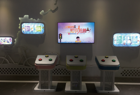 設(shè)置交通安全知識答題測驗(yàn)裝置,讓參觀者結(jié)合前面學(xué)到的交通安全知識回答測試問題,以此檢驗(yàn)參觀學(xué)習(xí)的效果,成績優(yōu)良者可以并給予一定的物質(zhì)獎(jiǎng)勵(lì)。無需裁判,自動(dòng)計(jì)分,并統(tǒng)計(jì)成績和排名,富有樂趣,管理方便,安全自助式不需要任何人來協(xié)助