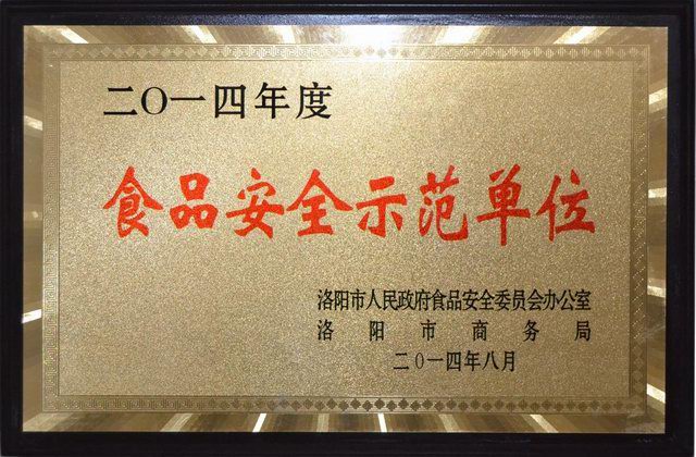 2014年9月3日下午,洛陽市召開創(chuàng)建食品安全示范單位現(xiàn)場推進會,洛陽市政府領(lǐng)導、相關(guān)委局負責人及食品安全示范單位申報企業(yè)參加了推進會,會上授予洛陽正大食品有限公司“食品安全示范單位”。