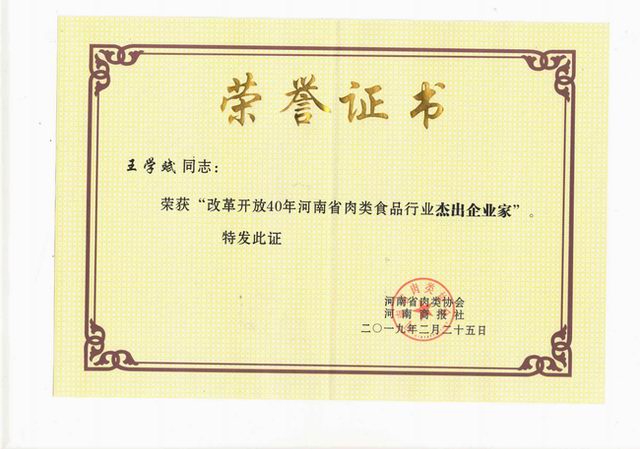 會(huì)議對(duì)勇立潮頭、扎實(shí)肯干、業(yè)績(jī)突出、有責(zé)任有擔(dān)當(dāng)?shù)南冗M(jìn)模范人物和規(guī)模大、實(shí)力強(qiáng)、信譽(yù)好的先進(jìn)示范企業(yè)進(jìn)行表彰:洛陽(yáng)正大榮獲改革開(kāi)放40年河南肉類食品行業(yè)強(qiáng)勢(shì)企業(yè)稱號(hào),王學(xué)斌***總裁榮獲改革開(kāi)放40年河南肉類食品行業(yè)杰出企業(yè)家!