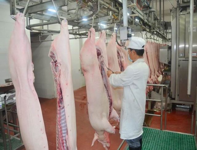 毛豬車輛入廠時(shí)嚴(yán)格車輪消毒池和人員專用通道消毒;卸車后經(jīng)過(guò)清洗、消毒、烘干等環(huán)節(jié)徹底消殺后方可出廠,確保安全;
