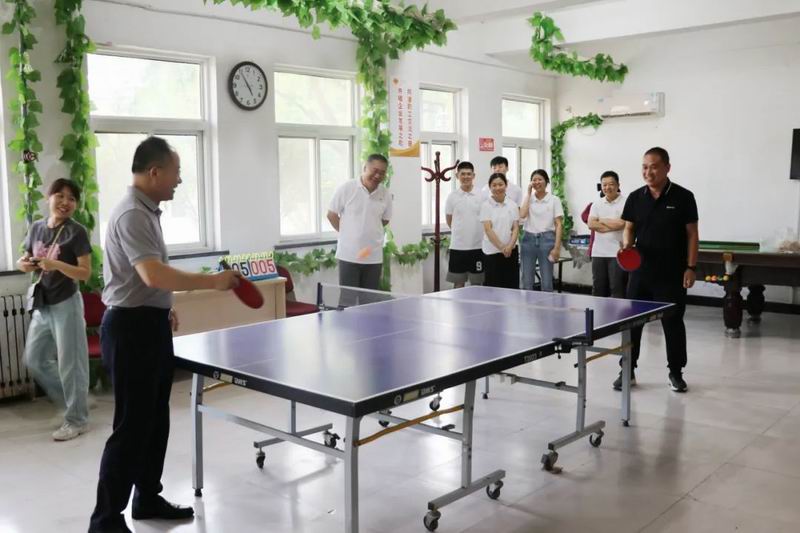 黨建活動結(jié)束后,雙方在職工活動中心舉行了迎“七一”乒乓球友誼賽,共同慶?!捌咭弧苯h節(jié)的到來。