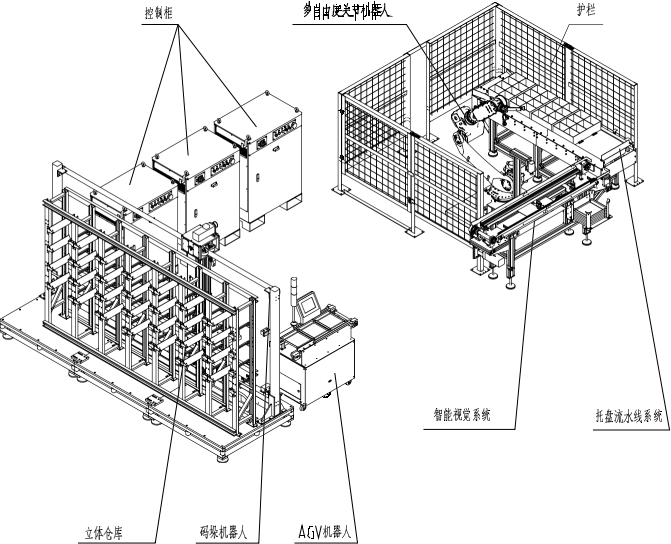 (1) 碼垛機(jī)立庫(kù)系統(tǒng),用于存儲(chǔ)物品托盤,并且按照要求碼垛機(jī)完成出庫(kù)和入庫(kù);