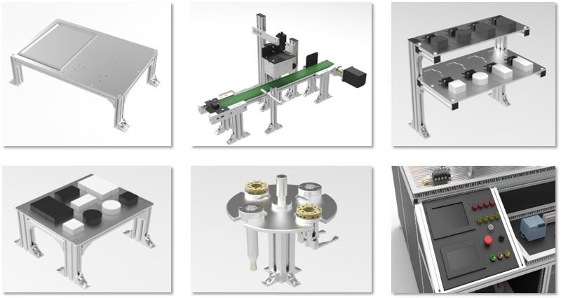 另外,模塊化機(jī)械設(shè)計(jì)是工業(yè)發(fā)達(dá)國(guó)家近二十年來一直采用的一種先進(jìn)的機(jī)械產(chǎn)品設(shè)計(jì)方法。學(xué)生自主設(shè)計(jì)臺(tái)面功能模塊可作為《機(jī)械設(shè)計(jì)》課程的綜合實(shí)驗(yàn)部分。學(xué)生根據(jù)課上所學(xué)機(jī)械原理和機(jī)械設(shè)計(jì)的基礎(chǔ)知識(shí),在三維設(shè)計(jì)軟件中實(shí)現(xiàn)自己的設(shè)計(jì)想法,可自行設(shè)計(jì)機(jī)器人末端工具,臺(tái)面工裝、生產(chǎn)流水線及視覺分揀等。學(xué)生也可組隊(duì)完成整個(gè)臺(tái)面的重新規(guī)劃,利用設(shè)備本體提供的氣路和電路總線,賦予臺(tái)面新的設(shè)計(jì)亮點(diǎn)。此部分也可作為機(jī)械設(shè)計(jì)、機(jī)械制造、機(jī)電一體化、工業(yè)設(shè)計(jì)等專業(yè)的畢業(yè)設(shè)計(jì)內(nèi)容。此工作站整體外形統(tǒng)一,具有外部通訊接口,所以有配置靈活、便于擴(kuò)展的優(yōu)點(diǎn)。各工作站既可以作為獨(dú)立的功能個(gè)體,完成機(jī)器人的實(shí)訓(xùn)任務(wù)。也可以作為相互的擴(kuò)展模塊,通過電纜緊密拼裝后組成一個(gè)整體的結(jié)構(gòu)。某一個(gè)工作站作為主控,其他工作站協(xié)同。通過之前所述不同的設(shè)計(jì)賦予每個(gè)工作站不同的功能, 可添加節(jié)拍控制、生產(chǎn)管理、工業(yè)系統(tǒng)工程等管理思路,使其整體實(shí)現(xiàn)更加多元化的功能。