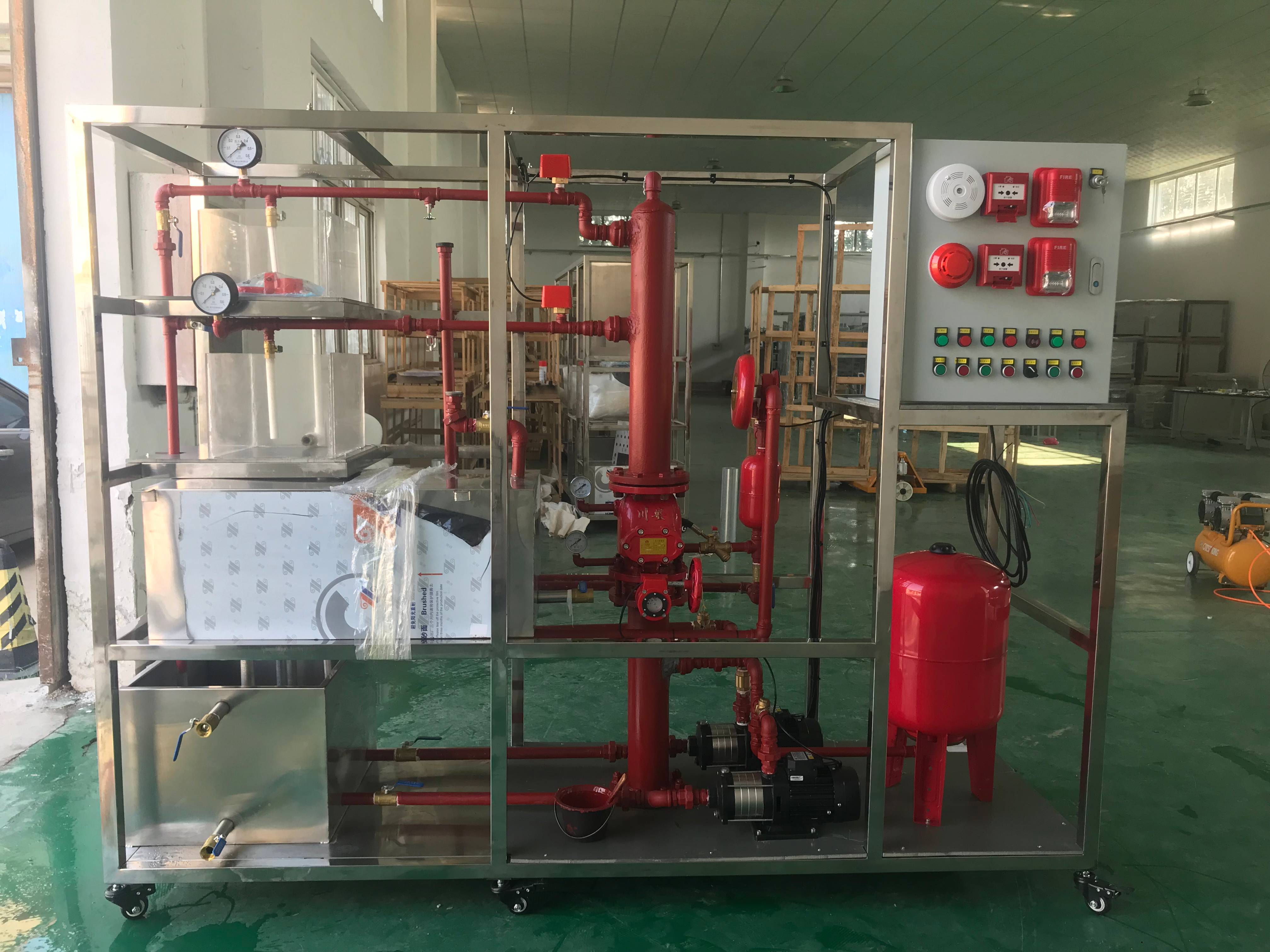 能進(jìn)行各種自動噴水滅火系統(tǒng)聯(lián)動操作的演示、各種噴頭的安裝及噴水試驗(yàn)、擴(kuò)展的滅火試驗(yàn)、自動噴水滅火系統(tǒng)的工作原理、線路設(shè)計與連接、故障設(shè)置、判斷與排除等實(shí)驗(yàn)和實(shí)訓(xùn),并可與消防系列中其它設(shè)備聯(lián)網(wǎng)進(jìn)行各種綜合實(shí)訓(xùn)。
