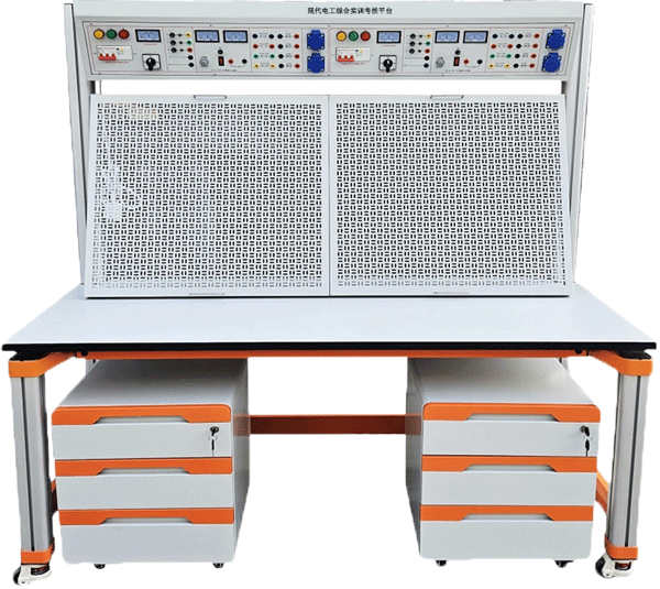 現(xiàn)代電工綜合實訓(xùn)考核實訓(xùn)臺由實訓(xùn)屏(內(nèi)置電源)、實訓(xùn)桌、實訓(xùn)儲物柜三大部分組成。