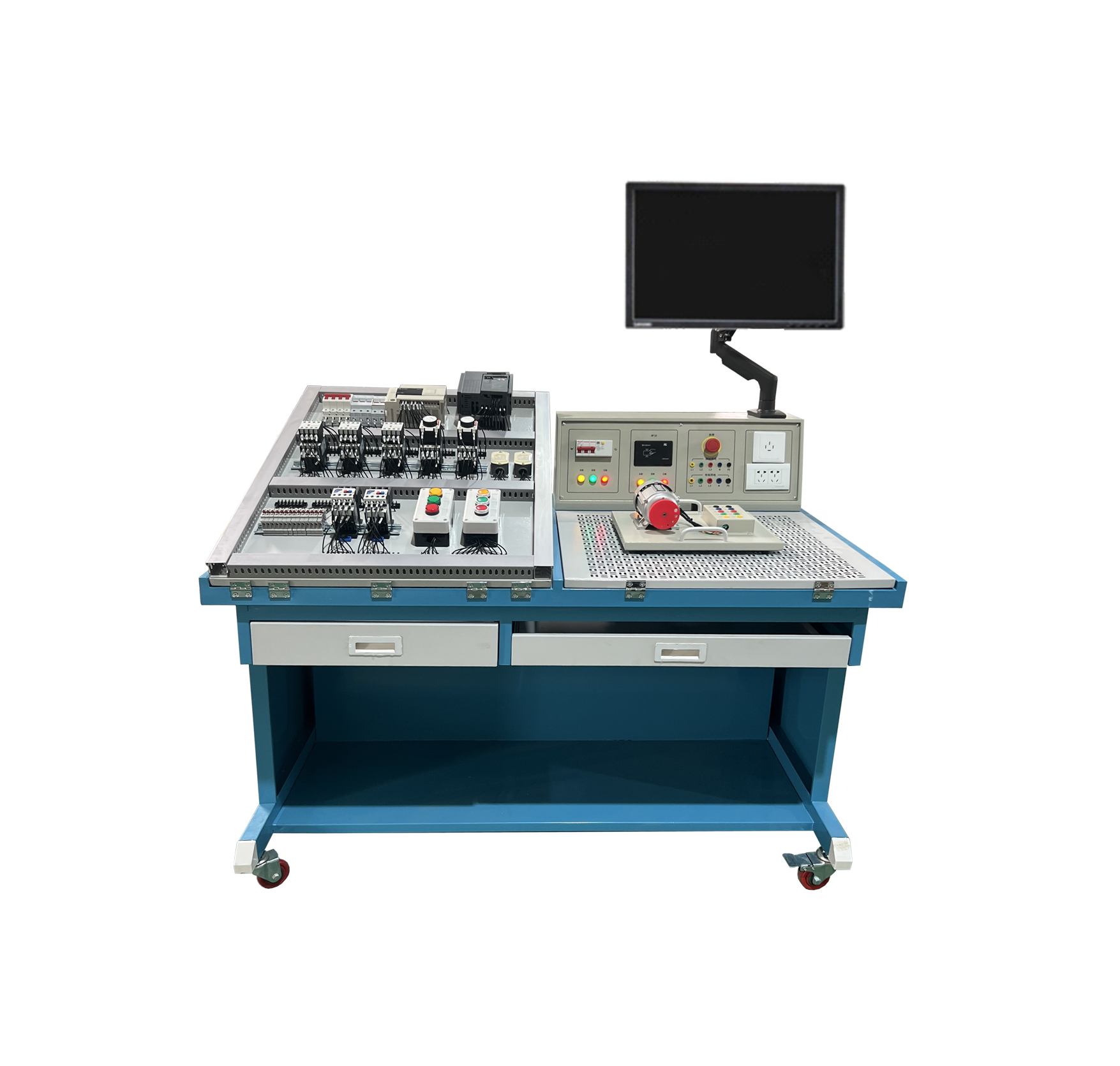 LG-WDG02A型 通用電工競賽訓(xùn)練平臺由實訓(xùn)屏(內(nèi)置電源)、實訓(xùn)桌(含鍵盤)、儲物柜三大部分組成。鋼制表面經(jīng)高溫噴塑處理,美觀大方且有效起到防銹絕緣的作用;電源箱的布局依次為電源保護裝置、電源指示裝置、電源輸出;實訓(xùn)桌左側(cè)安裝有角度可以調(diào)節(jié)的嵌入式的考核平臺1張,所有元器件均采用端子引出,學(xué)生接線只需在端子上進行接線,可以有效的保護元器件,轉(zhuǎn)接端子采用接插兩用端子排,方便與元器件和實訓(xùn)電源屏的連接,右側(cè)裝有網(wǎng)孔板一塊,角度可調(diào)嵌入式安裝;實驗桌底部裝有至少4個導(dǎo)向輪,方便設(shè)備移動;儲物柜采用標(biāo)準(zhǔn)結(jié)構(gòu)和抽屜式,用于存放工具以及實訓(xùn)資料。電腦通過可調(diào)節(jié)電腦支架安裝于電源屏的上方。