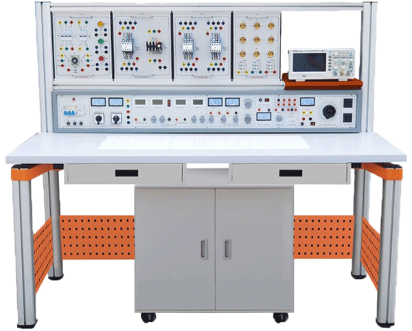 裝置由主機(jī)箱、實(shí)驗(yàn)桌、實(shí)訓(xùn)掛箱、獨(dú)立封裝實(shí)訓(xùn)電路模塊、移動(dòng)矮柜、示波器架、學(xué)生凳等組成。實(shí)訓(xùn)裝置支架與實(shí)訓(xùn)桌可組合、可拆裝。支架與桌腳一體,鋁合金結(jié)構(gòu),實(shí)訓(xùn)掛箱、各實(shí)驗(yàn)?zāi)K可根據(jù)實(shí)驗(yàn)需求自由組合放置。