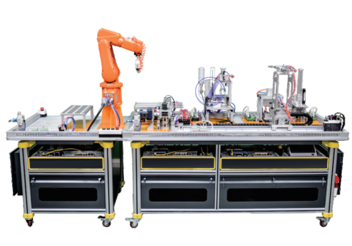 LGY-JD02A型 工業(yè)機(jī)器人機(jī)電一體化裝調(diào)訓(xùn)練工作站采用組合式結(jié)構(gòu)分別由安裝在鋁合金導(dǎo)軌式的實(shí)訓(xùn)臺(tái)上的送料單元、加工單元、裝配單元、雙層輸送單元、分揀單元5個(gè)單元,加上由鋁合金導(dǎo)軌式的實(shí)訓(xùn)臺(tái)上工業(yè)機(jī)器人碼垛單元兩大部分組合成多種組合方式的工業(yè)機(jī)器人機(jī)電一體化裝調(diào)實(shí)訓(xùn)裝備。電氣布局采用抽屜式,所有其電氣控制器都安裝在網(wǎng)孔板式的抽屜上,這種機(jī)電分離的格式更加符合了工業(yè)實(shí)際情況。