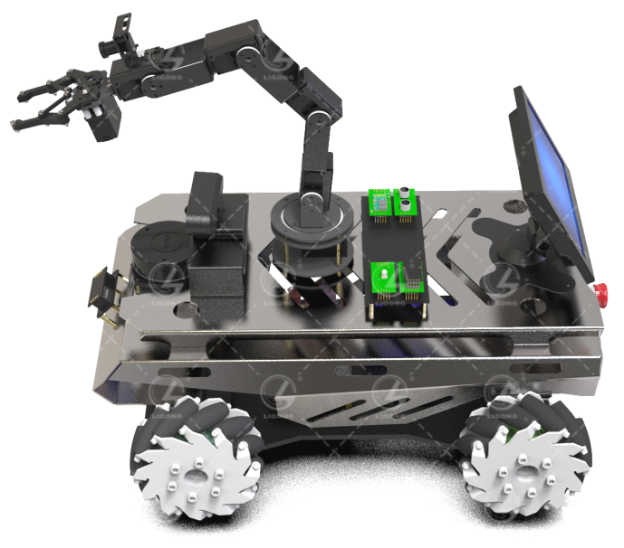機(jī)器人是綜合自動控制、微電子、信息技術(shù)、以及機(jī)械結(jié)構(gòu)于一體的等多學(xué)科交叉的綜合產(chǎn)物。隨著近年來現(xiàn)代工業(yè)、服務(wù)業(yè)的智能化產(chǎn)業(yè)不斷升級,以移動機(jī)器人為載體的智能控制、傳感器融合、信息處理以及協(xié)同作業(yè)發(fā)展迅速,正逐步成為高端智能化研究的熱點(diǎn)與難點(diǎn)。本產(chǎn)品以移動機(jī)器人為載體,以機(jī)械手臂為車載執(zhí)行單元,并配置視覺、激光雷達(dá)、運(yùn)動、語音、超聲波等各類傳感器,使得機(jī)器人具備環(huán)境感知、路徑規(guī)劃、智能控制、移動抓取、物流輸送等多重功能。通過對該系統(tǒng)的應(yīng)用與操作,可以幫助學(xué)生掌握基于人工智能技術(shù)的機(jī)器人運(yùn)動控制、傳感器感知、機(jī)械臂和機(jī)器人協(xié)同控制、視覺巡檢等領(lǐng)域的相關(guān)知識與實(shí)踐方法。