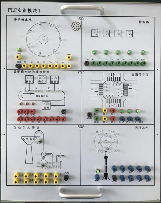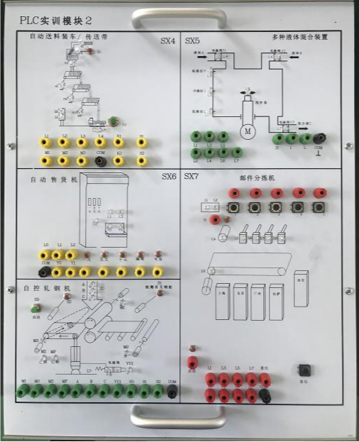 2、項(xiàng)目實(shí)訓(xùn)模塊:利用目前典型的可編程控制器及總線技術(shù)完成對工業(yè)生產(chǎn)中模擬對象,實(shí)物模型中的邏輯、模擬、過程、運(yùn)動等的控制實(shí)訓(xùn),完成學(xué)生認(rèn)知、設(shè)計(jì)、安裝、調(diào)試、檢修等多種技能實(shí)訓(xùn)。