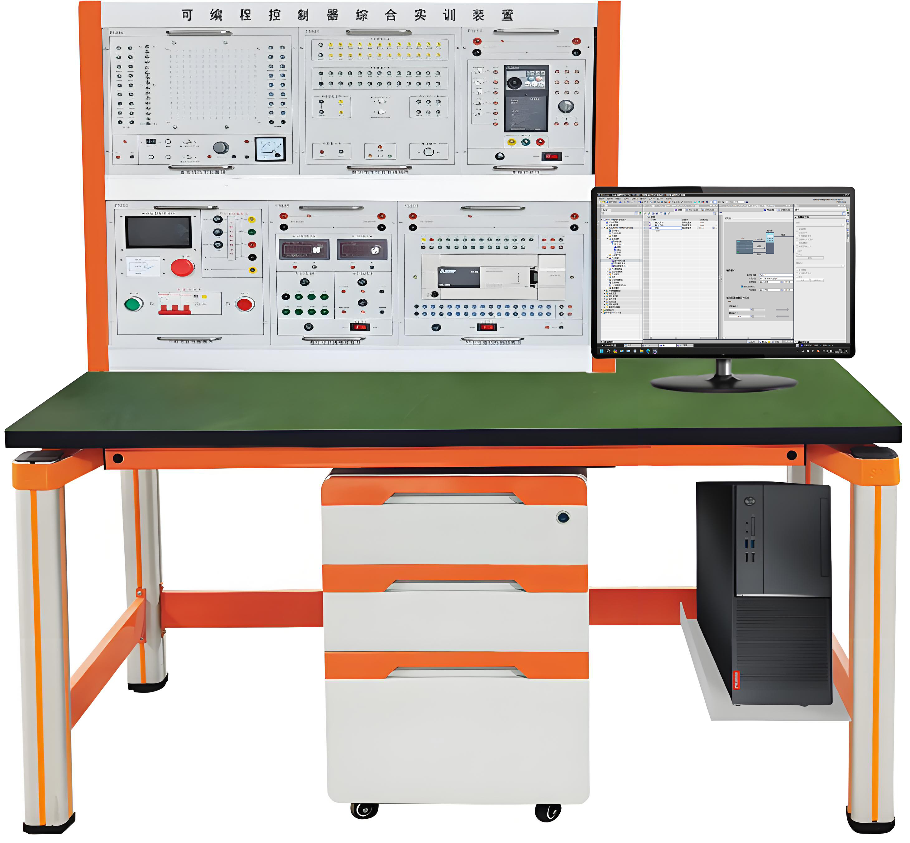 本實(shí)訓(xùn)臺(tái)由實(shí)訓(xùn)掛件、實(shí)訓(xùn)桌、實(shí)訓(xùn)儲(chǔ)物柜三大部分組成。