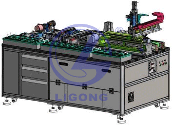 機(jī)架結(jié)構(gòu)采用鋁型材搭建,配地腳滾輪,警示燈,按鈕 控制盒,電氣元件安裝板采用可抽拉結(jié)構(gòu)。尺寸:(長寬高)1850×1050×850mm。