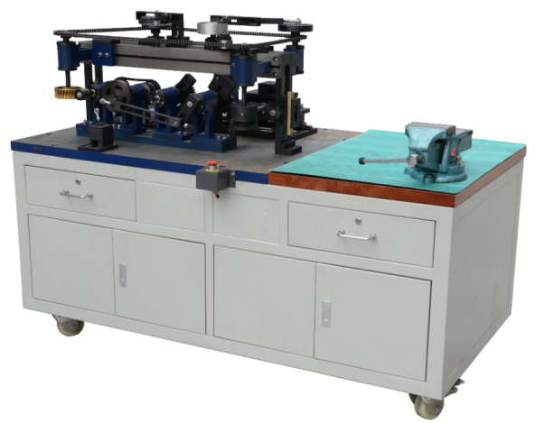 本裝置是結(jié)合各職業(yè)學校、技工院校“機械制造技術(shù)”、“機電設備安裝與維修”、“機械裝配”“機械設備裝配與自動控制”等專業(yè)而研制的,學生通過裝配和調(diào)整動力傳動機構(gòu)、擠壓破碎機、沖床機構(gòu)、提升搬運機、鏈條運輸機等機構(gòu),強化了學生對各類傳動機構(gòu)故障診斷和維修等綜合能力,培養(yǎng)了識讀與繪制裝配圖和零件圖、鉗工基本操作、零部件和機構(gòu)裝配工藝與調(diào)整、裝配質(zhì)量檢驗等技能,使學生能夠達到“學以致用”并且在實踐中學到新的知識。