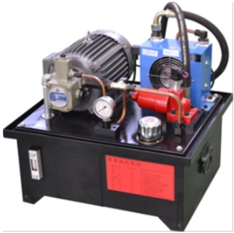 液壓泵站由三相電機(jī)、變量葉片泵、單向閥、風(fēng)冷器、空氣濾清器、油溫油面計(jì)、壓力表等組成。液壓泵站控制與實(shí)驗(yàn)臺一體安裝,具有電氣過載、 缺相保護(hù)等功能,專用電器軟啟動器,防系統(tǒng)憋壓裝置,控制系統(tǒng)全部使用國際知名廠商電器。