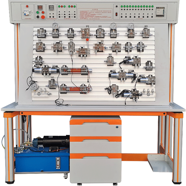 5.元件模塊化 :各液壓元件成獨(dú)立模塊,配有方便安裝的底板,可以隨意在"T"型槽式鋁合金型材板上組建各種實(shí)驗(yàn)回路,操件快捷簡單。
