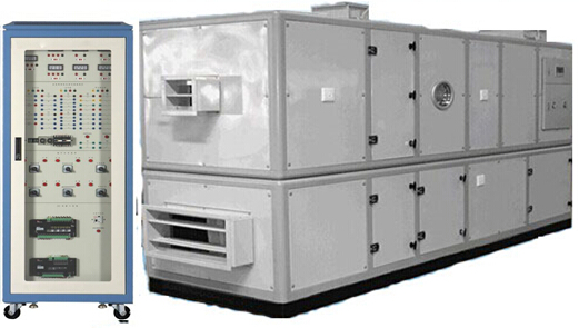 LG-KTZ01型 組合式空調(diào)機組實訓裝置應(yīng)集制冷系統(tǒng)、空氣處理、過程控制、工程組態(tài)技術(shù)于一體。組合式空調(diào)機組本身不帶冷、熱源,是以冷、熱水或蒸汽為媒介,用以完成對空氣的過濾、加熱、冷卻、加濕、消聲、熱回收、新風處理和新、回風混合等功能。能實現(xiàn)一次回風系統(tǒng)、二次回風系統(tǒng)的空氣處理過程,其配置及功能如下: