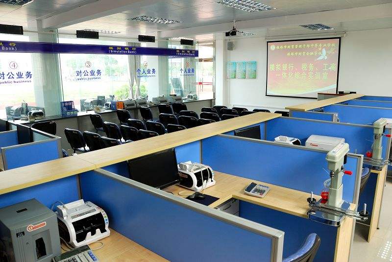 在以往的職業(yè)教育過(guò)程中,一般分為課堂教學(xué)和畢業(yè)前的頂崗實(shí)習(xí)兩個(gè)階段,忽略了專業(yè)理論知識(shí)與專業(yè)技能的綜合運(yùn)用、各種專業(yè)專項(xiàng)技能的綜合運(yùn)用,以及專業(yè)核心能力與關(guān)鍵能力的綜合運(yùn)用,導(dǎo)致課堂教學(xué)和頂崗實(shí)習(xí)相脫節(jié),學(xué)生不能迅速適應(yīng)實(shí)習(xí)崗位,直接影響到學(xué)生就業(yè)。經(jīng)過(guò)對(duì)職業(yè)教育實(shí)踐教學(xué)體系的研究與實(shí)踐,我們組建了模擬銀行綜合實(shí)訓(xùn)室,較好解決了上述問題。