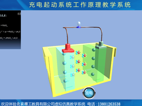 電池化學(xué)工作原理演示:在3D環(huán)境下搭建電池化學(xué)反應(yīng)3d模型,動(dòng)態(tài)演示充放電變化學(xué)反應(yīng)過程,包含鉛酸電池、鎳氫電池,鋰電池等;