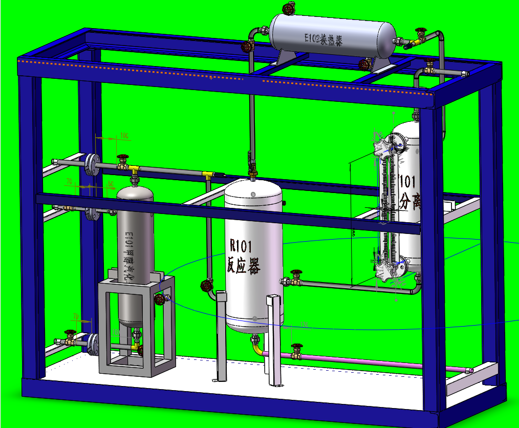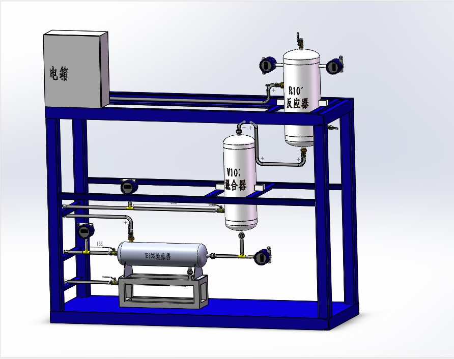 一、裝置特色 整套裝置由鋼制安裝框架、反應器、換熱器、緩沖罐、仿真儀表、就地計算機操作臺、就地智能儀表控制上位監(jiān)控軟件、外置配套設備等組成,工藝路線簡...