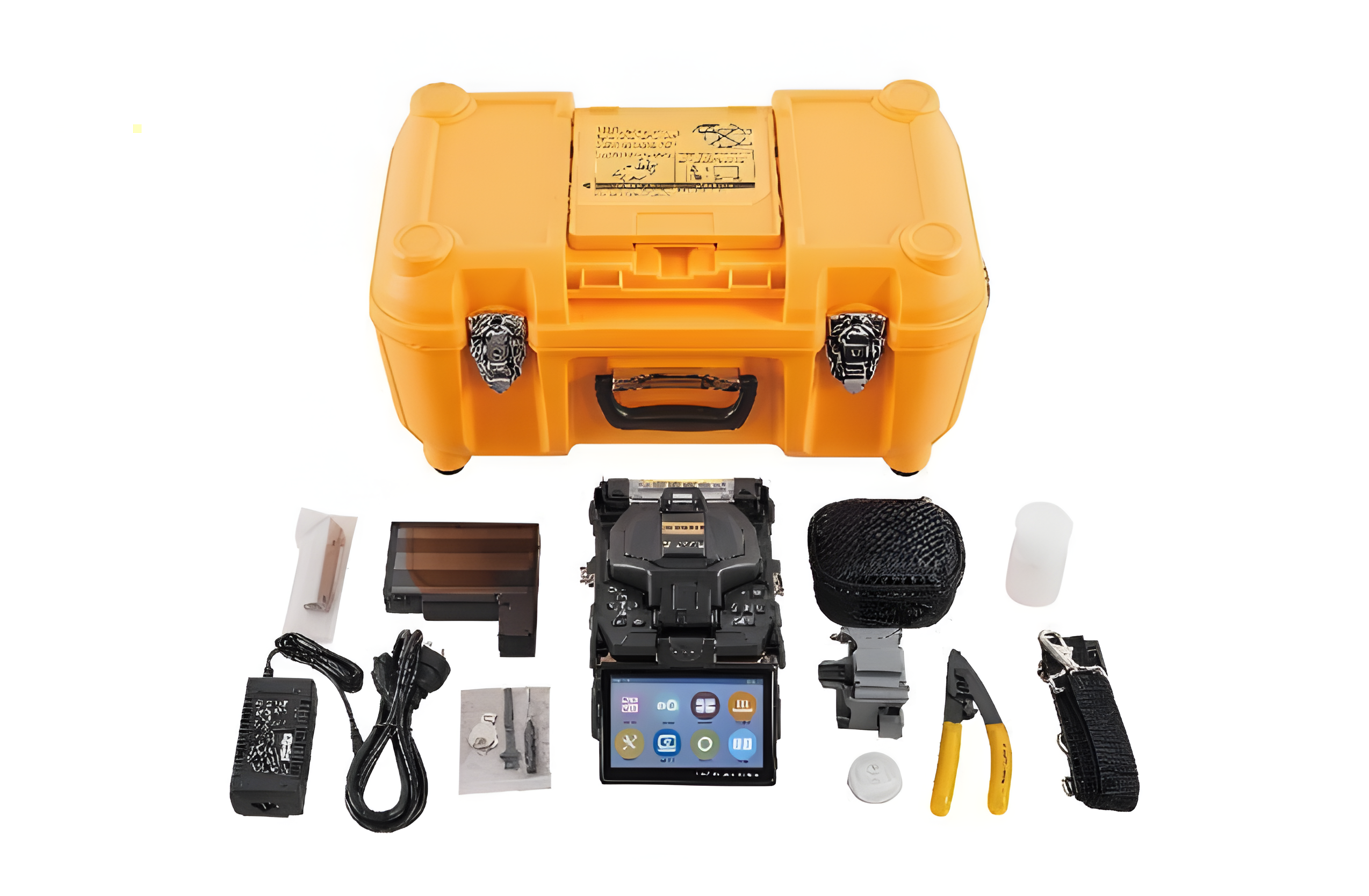 3、配置:硬攜帶箱1個(gè),熔接機(jī)主機(jī)1個(gè),光纖切割刀1把,電池1塊,適配器1個(gè),備用電極1對(duì),電源線1條,肩帶1條,酒精泵1個(gè),米勒鉗1把。