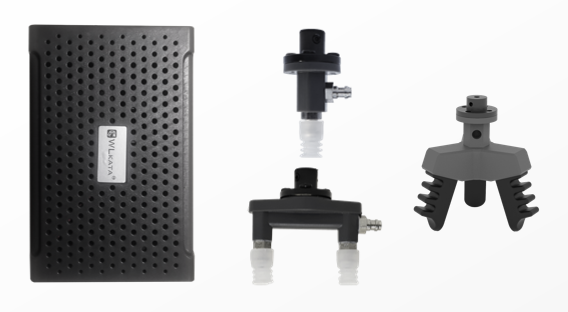 機(jī)器人開發(fā)氣動(dòng)套件包含氣動(dòng)吸盤、柔爪、氣源。安裝于機(jī)械臂末端,實(shí)現(xiàn)物品抓取與釋放