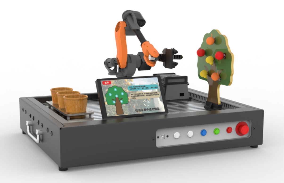 桌面六軸機器人*1;智能一體化底座*1;視覺模塊*1;水果配件包*1;實驗指導(dǎo)手冊*1