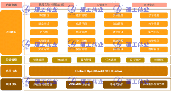 在教學(xué)方式上,提供了一站式教學(xué)服務(wù),可滿足用戶備課、授課、課堂互動、課后作業(yè)、課程考核、實(shí)訓(xùn)拓展、教學(xué)考試和教學(xué)分析全過程教學(xué),并且針對不同學(xué)習(xí)程度的用戶定制打造實(shí)驗(yàn)學(xué)習(xí)環(huán)境和課程體系,讓教學(xué)更簡單,更高效。